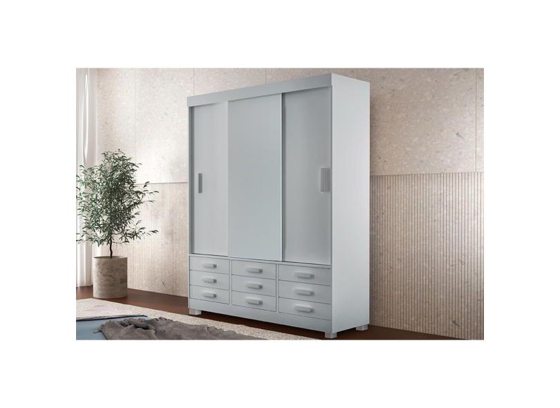 Guarda Roupa Solteiro 3 Portas De Correr E 9 Gavetas C/ Pés Detroit Branco - Rufato