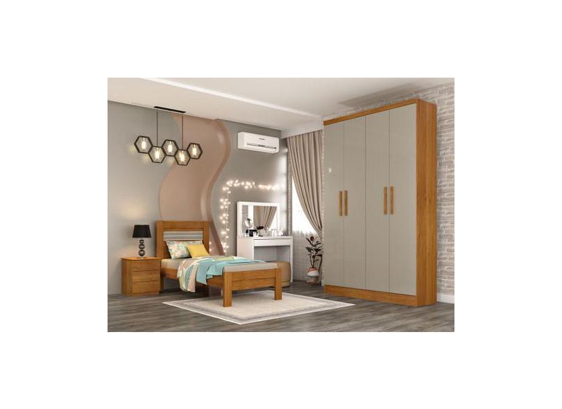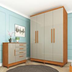 Guarda Roupa Solteiro 4 Portas 2 Gavetas - Amsterdam-Cinamomo/Off Whit
