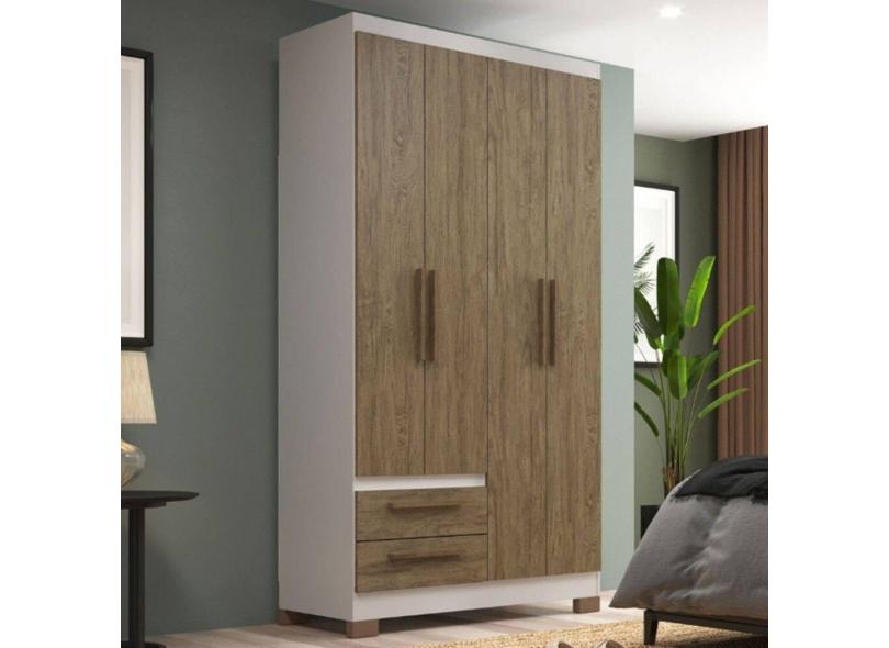 Guarda-Roupa Solteiro 4 Portas 2 Gavetas Branco/Wood - Decibal