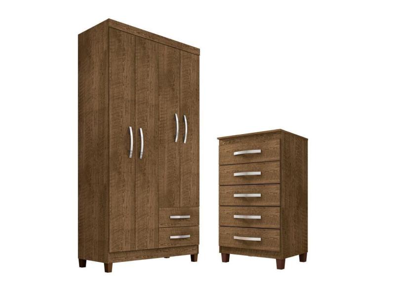 Guarda Roupa Solteiro 4 Portas 2 Gavetas Com Cômoda 5 Gavetas Cannes Malbec Incorplac