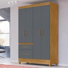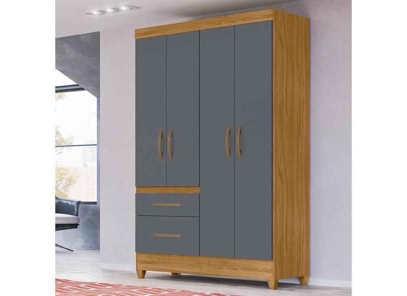Guarda Roupa Solteiro 4 portas 2 gavetas Freijo / Cinza Madri - Moval