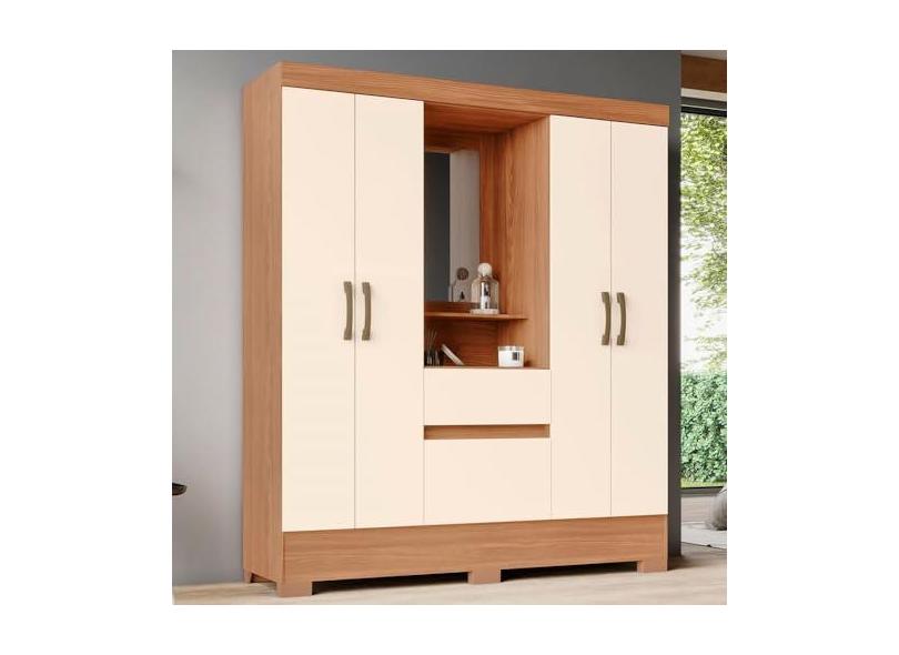 Guarda-Roupa Solteiro 4 Portas 2 Gavetas Nature/Off White Bs07 - Briz
