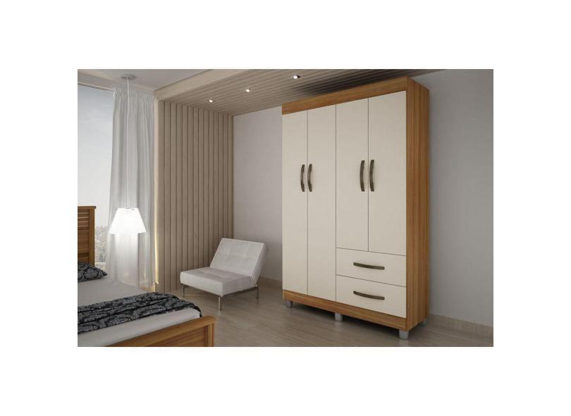 Guarda-Roupa Solteiro 4 Portas 2 Gavetas - Paris-Carvalho/Off White - CHF Móveis