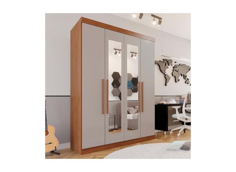 Guarda-roupa Solteiro 4 Portas 3 Gavetas com Espelho Roma Espresso Móveis Cinamomo/Off White