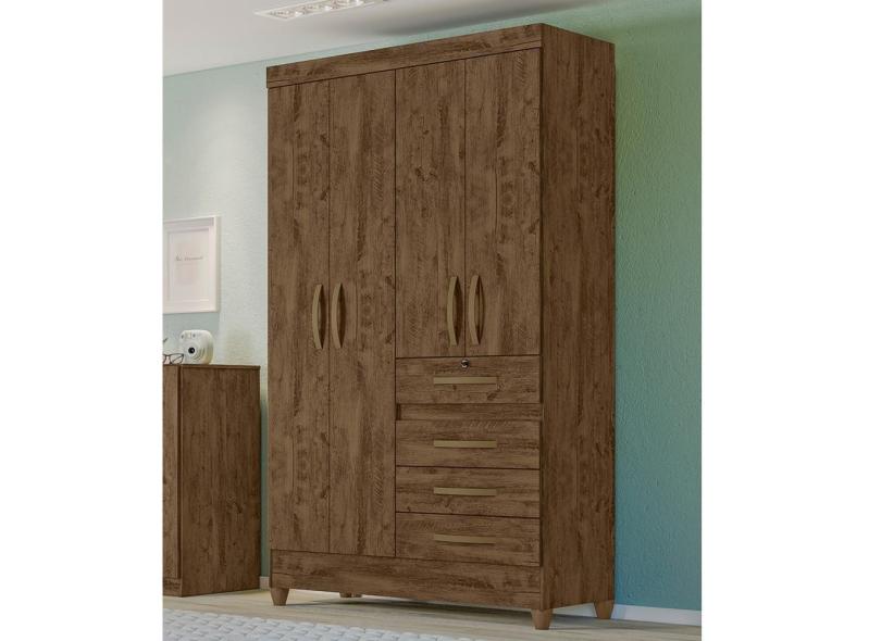 Guarda Roupa Solteiro 4 Portas 4 Gavetas Castanho
