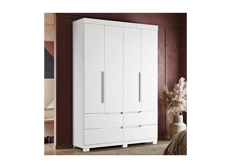 Guarda Roupa Solteiro 4 Portas 4 Gavetas Doble Albatroz Móveis Branco