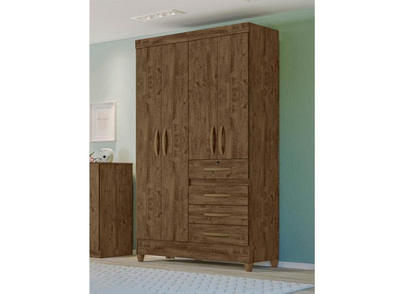 Guarda Roupa Solteiro 4 Portas 4 Gavetas Sobral - Castanho Wood Castanho Wood