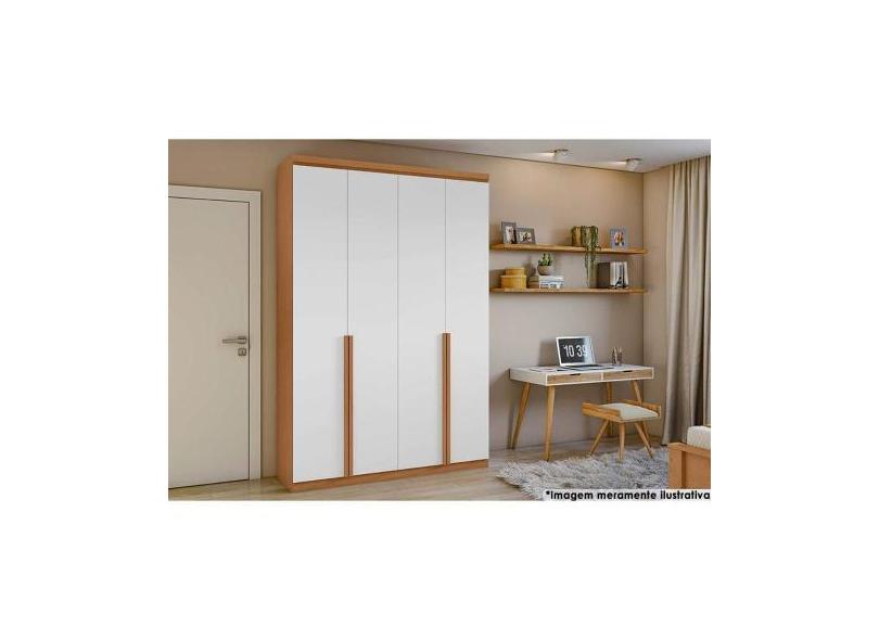 Guarda Roupa Solteiro 4 Portas E 2 Gavetas Alonzo Plus Amêndoa/Branco
