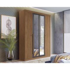 Guarda Roupa Solteiro 4 Portas E 2 Gavetas c- Espelho Buriti Jatoba-grafitte - Santos Andirá