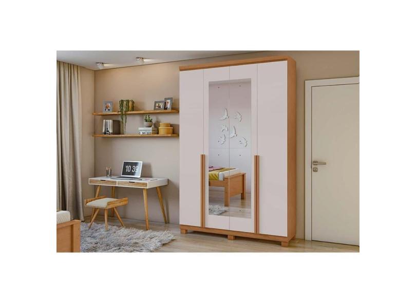 Guarda Roupa Solteiro 4 Portas e 2 Gavetas c/ Espelho e Pés Alonzo Amendoa/Off White - Lopas