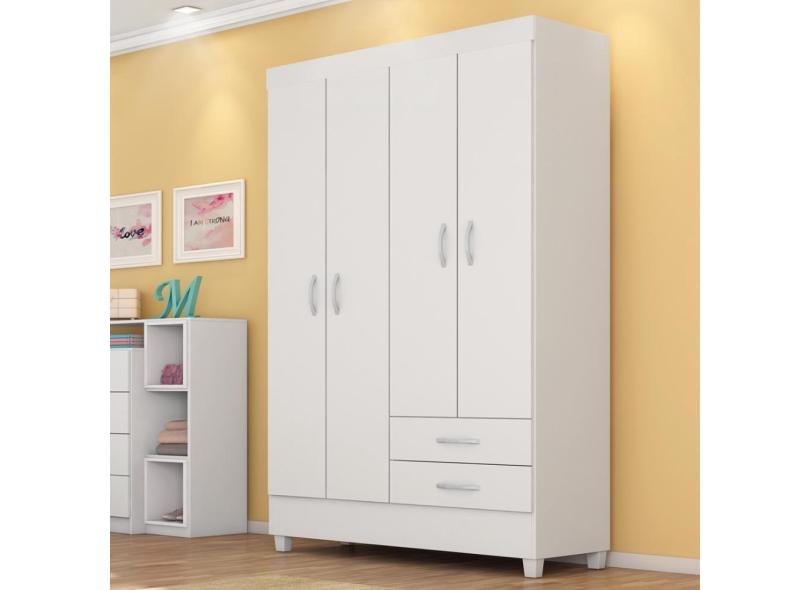 Guarda Roupa Solteiro 4 Portas E 2 Gavetas Toledo Branco-rosa-branco Branco