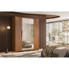 Guarda Roupa Solteiro 4 Portas e 3 Gavetas c/ 2 Espelhos e Pés Attore