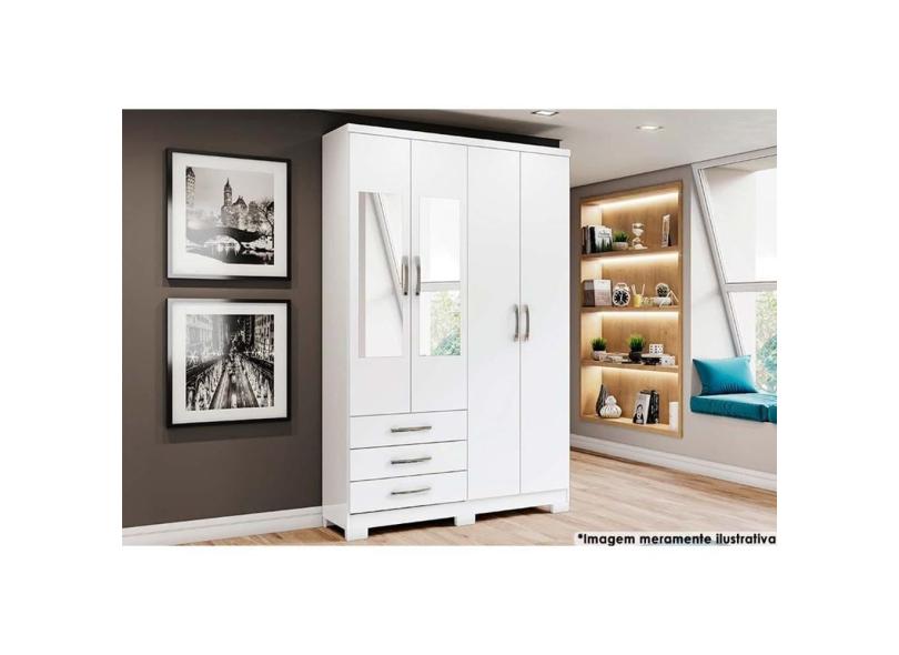 Guarda Roupa Solteiro 4 Portas e 3 Gavetas c/ Espelho e Pés Caju DA135 Branco - Henn