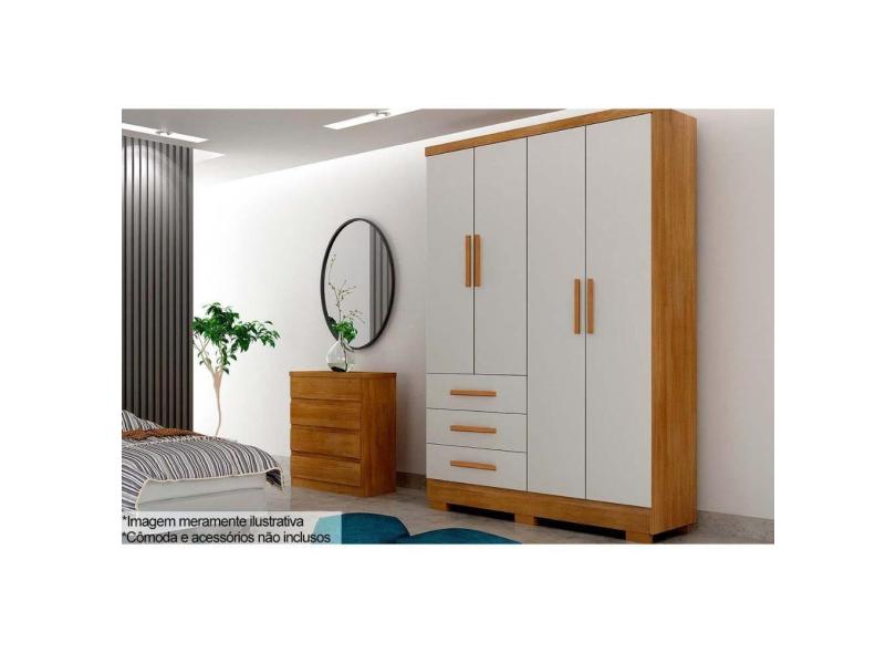 Guarda Roupa Solteiro 4 Portas e 3 Gavetas c/Pés Encant/Berlim Cumaru/Fendi - Novo Horizonte
