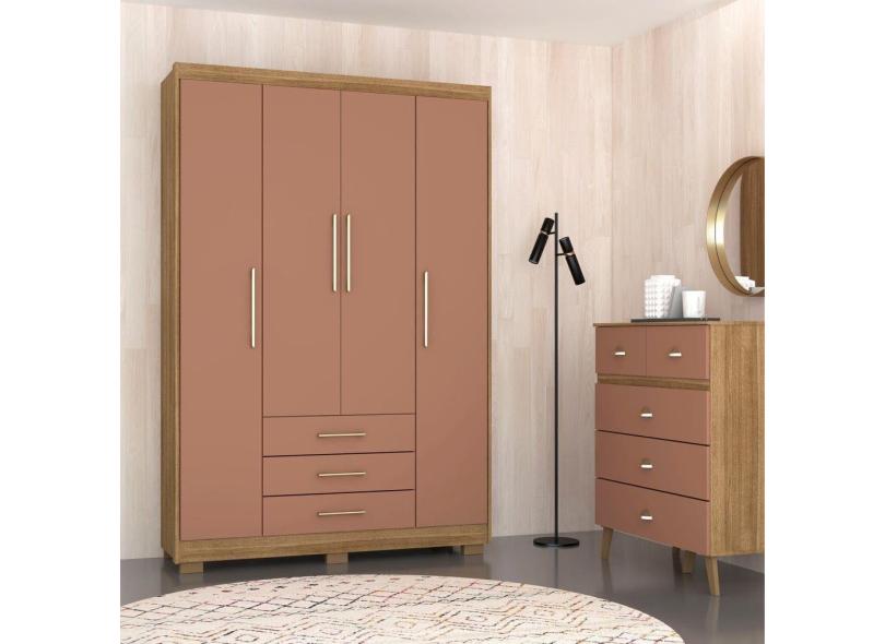 Guarda-Roupa Solteiro 4 Portas e 3 Gavetas Madri Marrom/Camarim