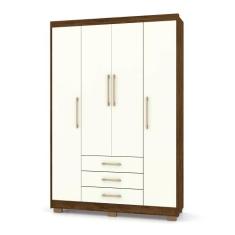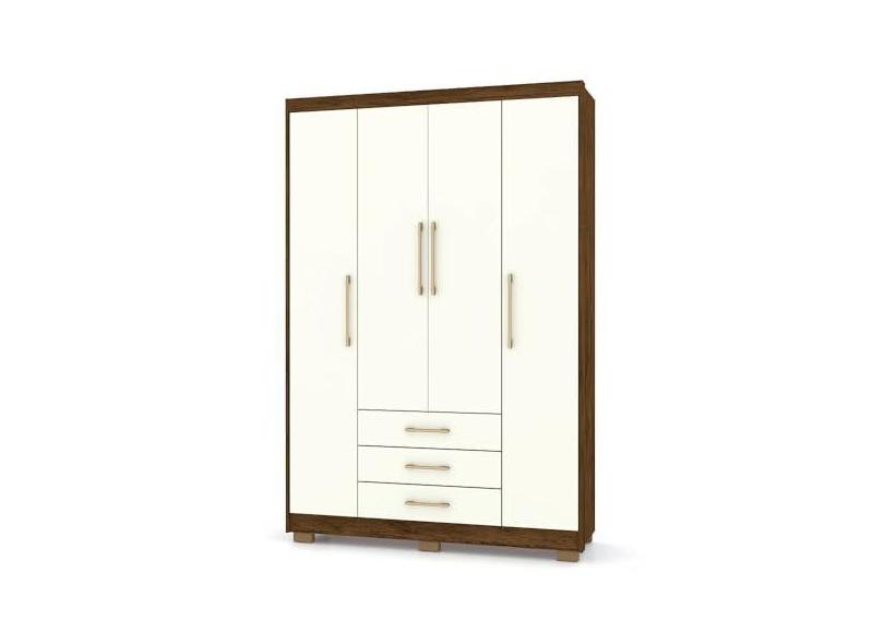 Guarda Roupa Solteiro 4 Portas e 3 Gavetas Valência Imbuia/Champanhe - Pallazio