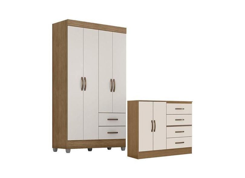 Guarda Roupa Solteiro 4 Portas E Cômoda 4 Gavetas E 2 Portas Lite Natu