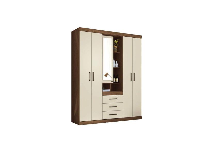 Guarda Roupa Solteiro 5 Portas E 3 Gavetas Havana Star 5.3 Jatoba/Areia - Santos Andirá