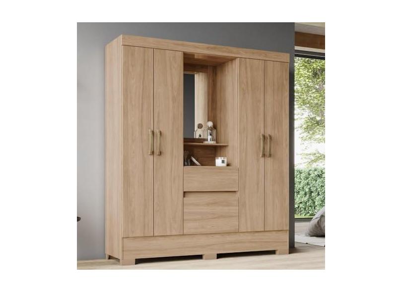 Guarda-roupa Solteiro 6 Portas 2 Gavetas Bs01 Jequitibá Brilho
