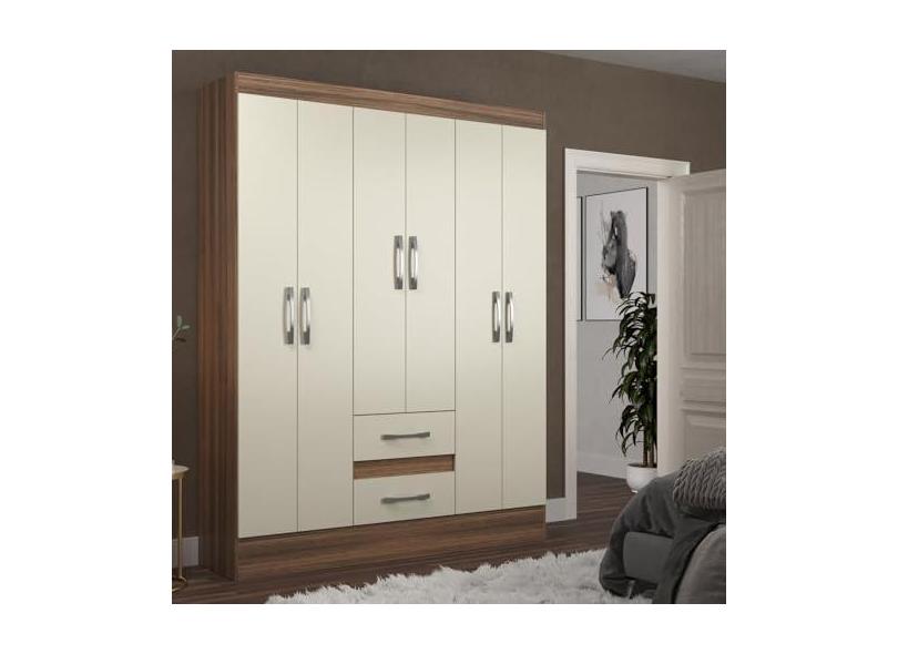 Guarda-roupa Solteiro 6 Portas 2 Gavetas Magistral Castanho