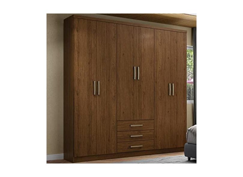 Guarda Roupa Solteiro 6 Portas 3 Gavetas City Henn Castanho Hp