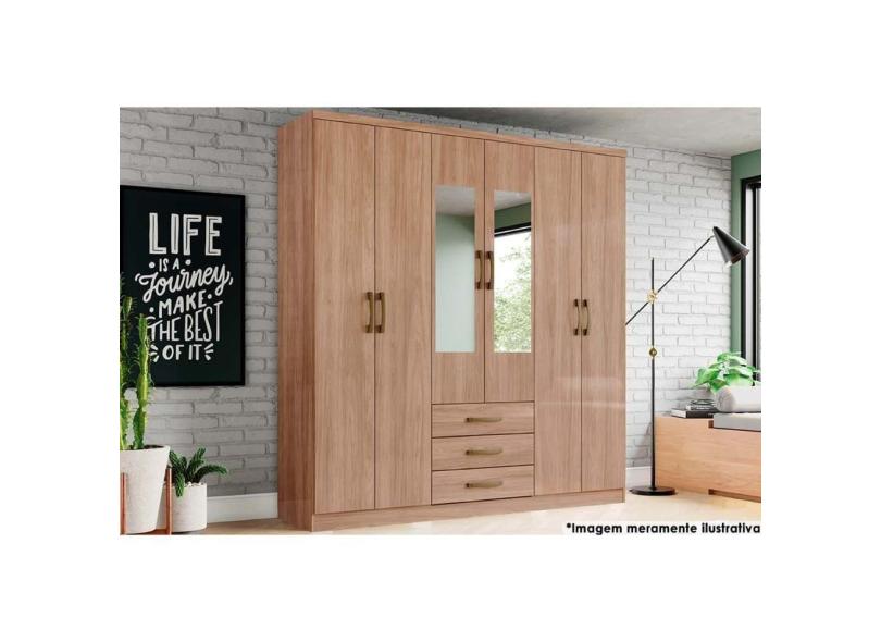 Guarda Roupa Solteiro 6 Portas e 3 Gavetas c/ Espelho Caju DA136 Jequitibá Brilho - Henn