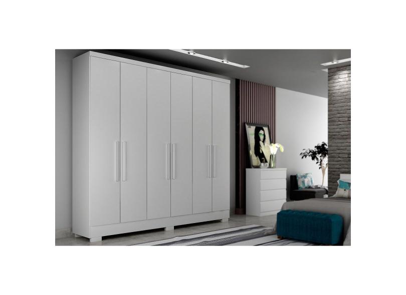 Guarda Roupa Solteiro 6 Portas E 4 Gavetas C Espelho E Pes Milly Branco Novo Horizonte