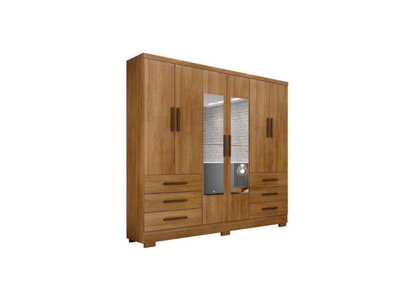 Guarda Roupa Solteiro 6 Portas E 6 Gavetas C/espelho E Pés Encant Freijo Cumaru - Novo Horizonte