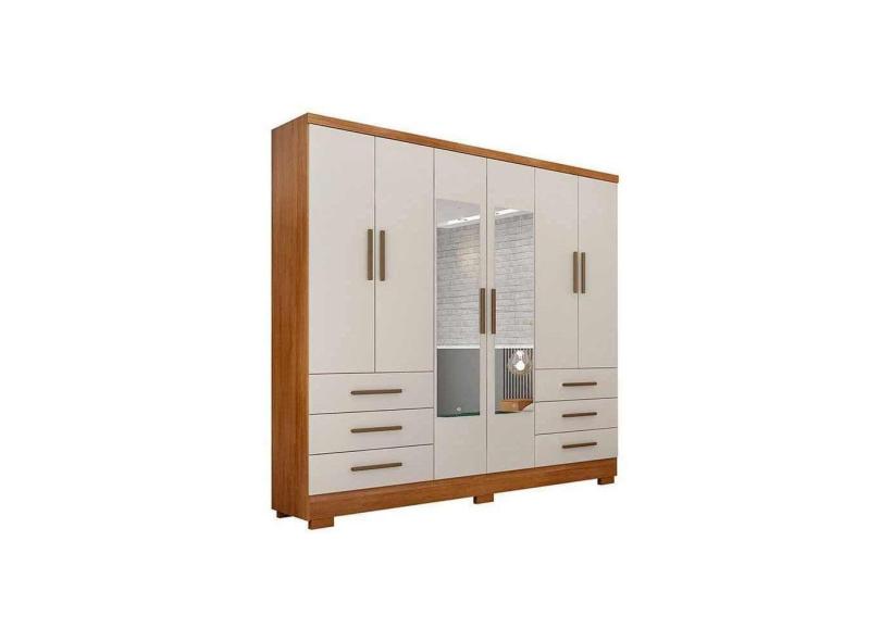 Guarda Roupa Solteiro 6 Portas E 6 Gavetas C/Espelho E Pés Encant Freijó/Fendi - Novo Horizonte