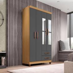 Guarda Roupa Solteiro Ambiente Modena com Espelho 4 Portas Carvalho Americano Grafite - Incorplac