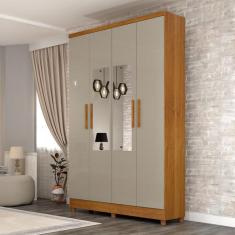 Guarda-Roupa Solteiro Amsterdam 4 Portas 2 Gavetas Com Espelho Cinamom