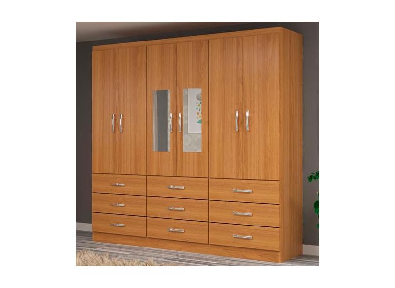 Guarda-Roupa Solteiro Bergamo 6 Portas 9 Gavetas Com Espelho Cinamomo