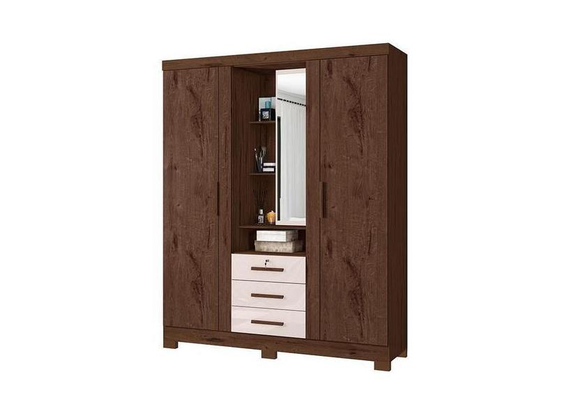 Guarda Roupa Solteiro Capelinha Premium 3 Portas Jacarandá Off White