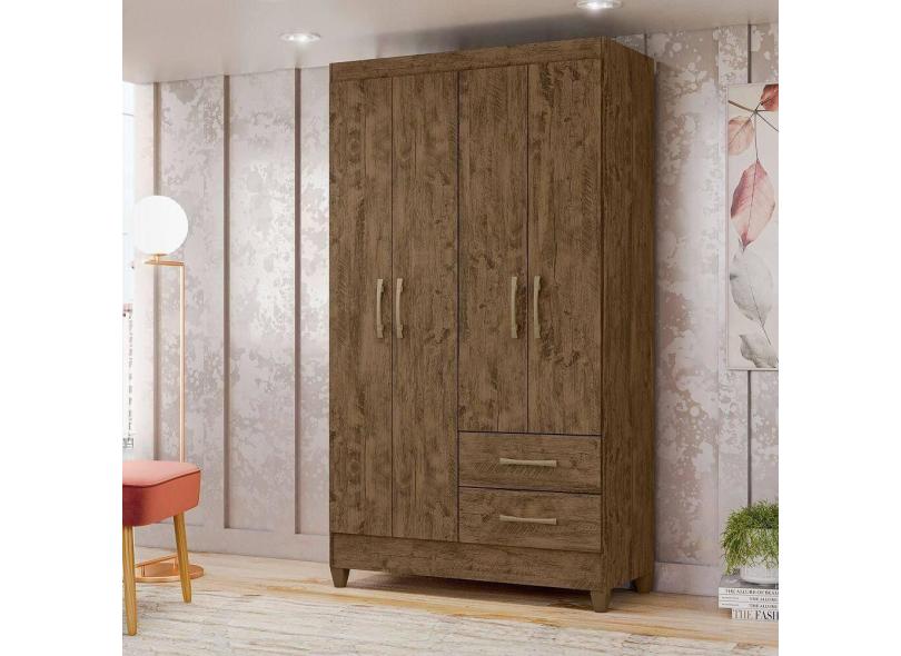 Guarda Roupa Solteiro Chile 4 Portas 2 Gavetas 103cm Castanho Wood - Fabrica 1 Móveis