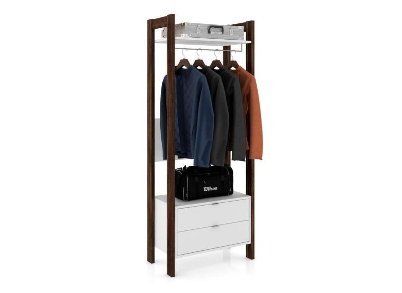 Guarda Roupa Solteiro Closet Branco/Nogal Tecno Mobili