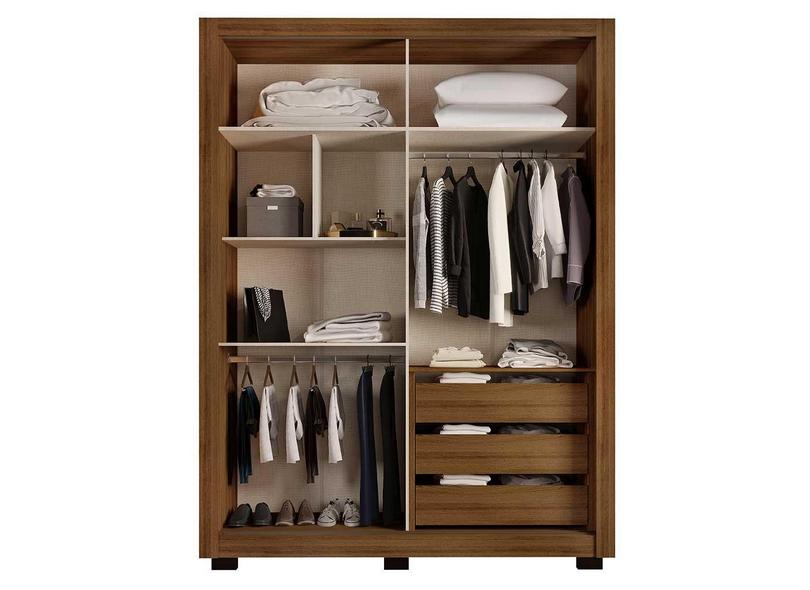 Guarda-Roupa Solteiro com Espelho 2 Portas 3 Gavetas Lume DJ Móveis