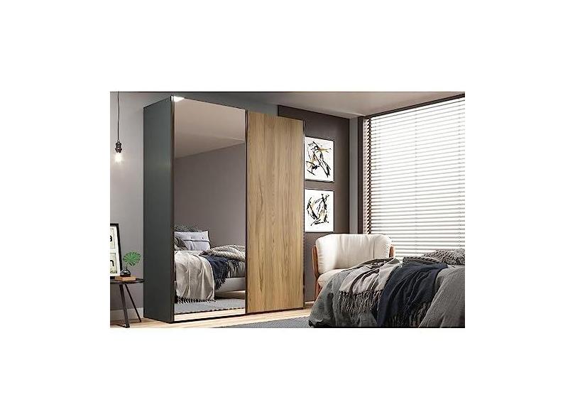 Guarda Roupa Solteiro com Espelho 2 Portas 3 Gavetas Veneto Cinza/olmo Italiano