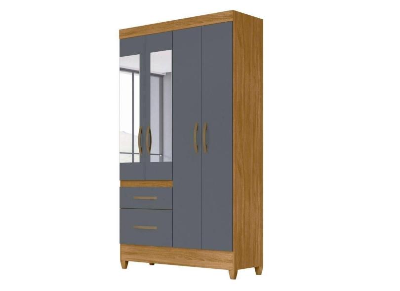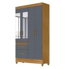 Guarda Roupa Solteiro Com Espelho 4 Portas 2 Gavetas Dalí M07 Freijó-cinza