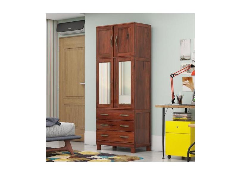 Guarda Roupa Solteiro Com Espelho E Pés 4 Portas 3 Gavetas Paris - Lan