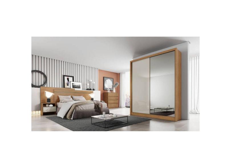 Guarda Roupa Solteiro com Espelho MDF 3 Gavetas - Toledo-Cumaru/Fendi - Móveis Novo Horizonte