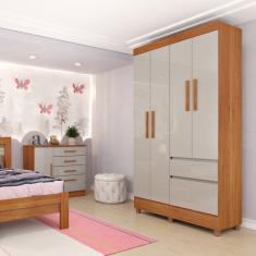 Guarda Roupa Solteiro com Pés 4 Portas 2 Gavetas - Oregon-Cinamomo/Off White - Tcil Móveis