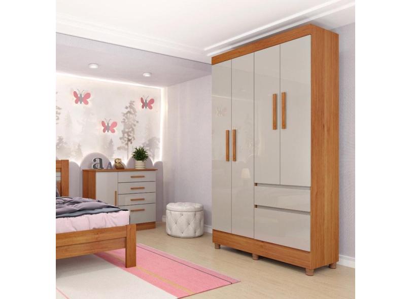 Guarda Roupa Solteiro com Pés 4 Portas 2 Gavetas - Oregon-Cinamomo/Off White - Tcil Móveis