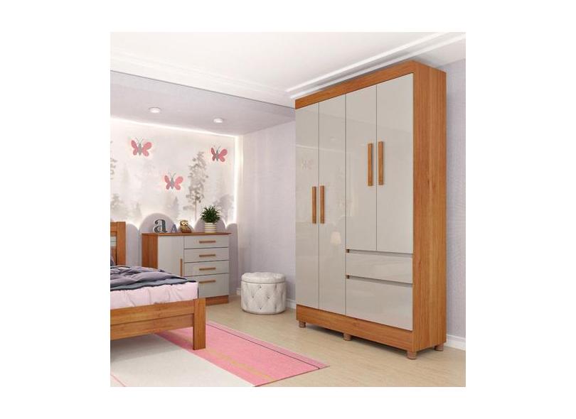 Guarda Roupa Solteiro Com Pés 4 Portas 2 Gavetas - Oregon-Cinamomo/Off