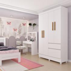 Guarda Roupa Solteiro com Pés 4 Portas 2 Gavetas - Oregon-Neve - Tcil Móveis