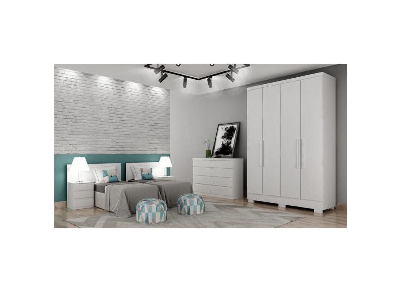 Guarda Roupa Solteiro com Pés 4 Portas 2 Gavetas - Veneza-Branco - Móveis Novo Horizonte