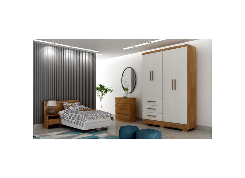 O menor preço encontrado no Brasil para Guarda Roupa Solteiro com Pés 4 Portas 3 Gavetas - Encant-Cumaru off white - Móveis Novo Horizonte atualmente é R$ 926,27.