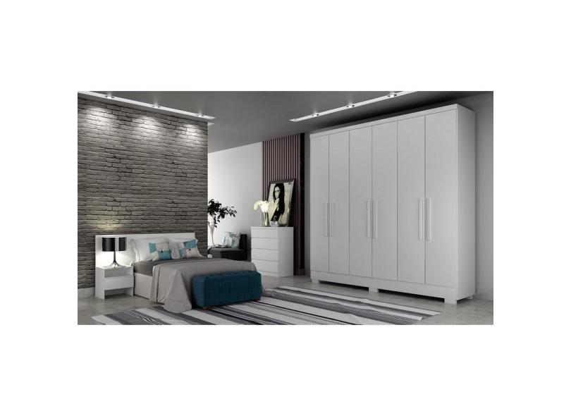 Guarda Roupa Solteiro com Pés 6 Portas 4 Gavetas - Veneza-Branco - Móveis Novo Horizonte