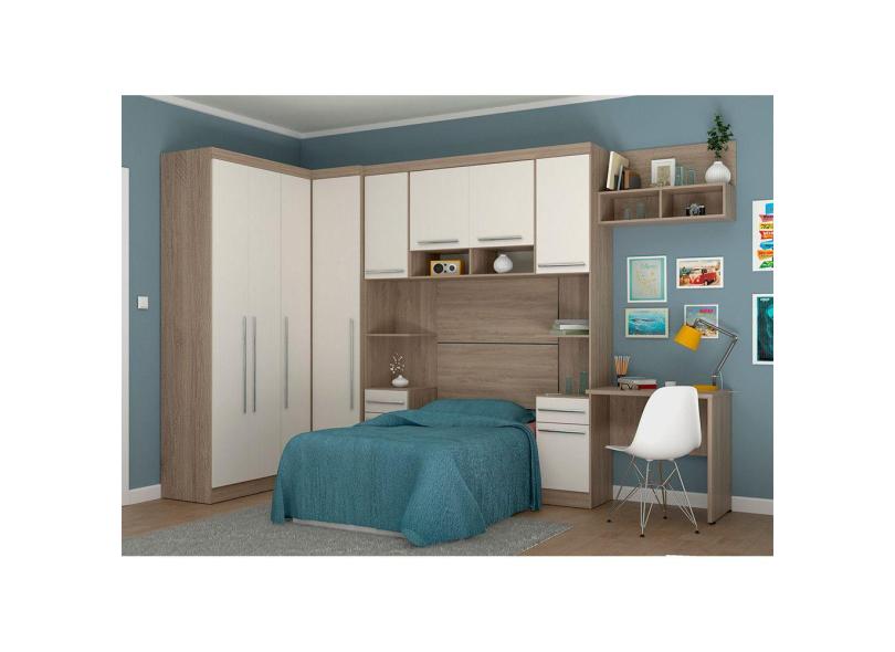 Guarda Roupa Solteiro de Canto 8 Portas e 5 Gavetas Avelã Rústico com Areia Master Luciane Móveis