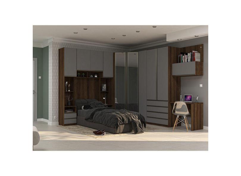 O menor preço encontrado no Brasil para Guarda Roupa Solteiro de Canto Vidro Reflecta com Escrivaninha Nogueira Cinza Prime Luciane Móveis atualmente é R$ 11.222,85.
