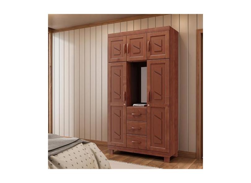 Guarda Roupa Solteiro Decorativo Alonso Madeira 05 Portas Com Capelinha Imbúia G74 - Gran Belo